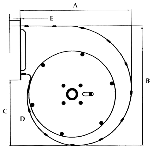 Centrifugal type single inlet blower featuring the unique External Rotor Motor, with motorized impeller totally enclosed into blower housing.